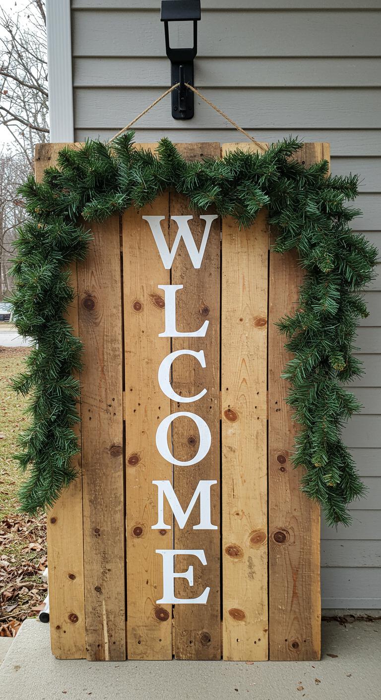 Classic Wooden Pallet Welcome Sign With Evergreen Garland
