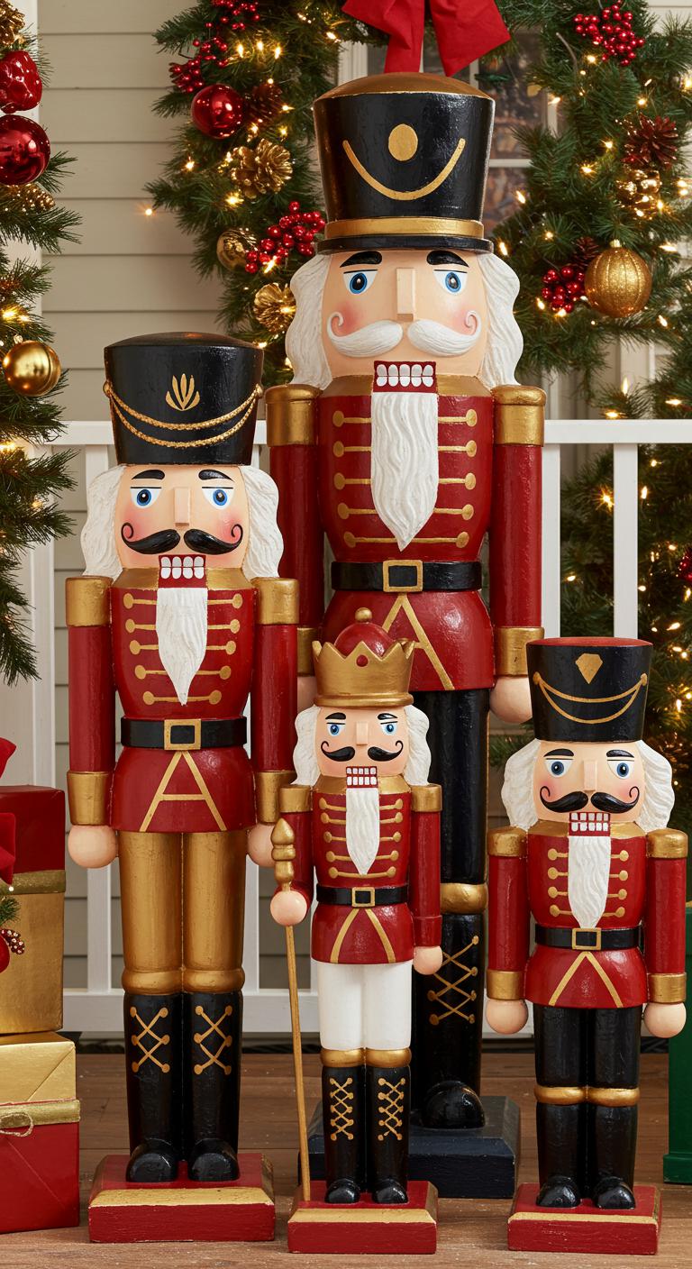 Start by sketching the proportions you want—tall, stately guards or short, chunky charmers—so you can cut your boards to exact lengths and get consistent, balanced nutcrackers for the porch. Cut, sand, and assemble simple shapes; seal for outdoor use. Use bold nutcracker painting—classic reds, golds, black—to command your festive porch. Anchor bases for wind and enjoy the freedom of custom decor.