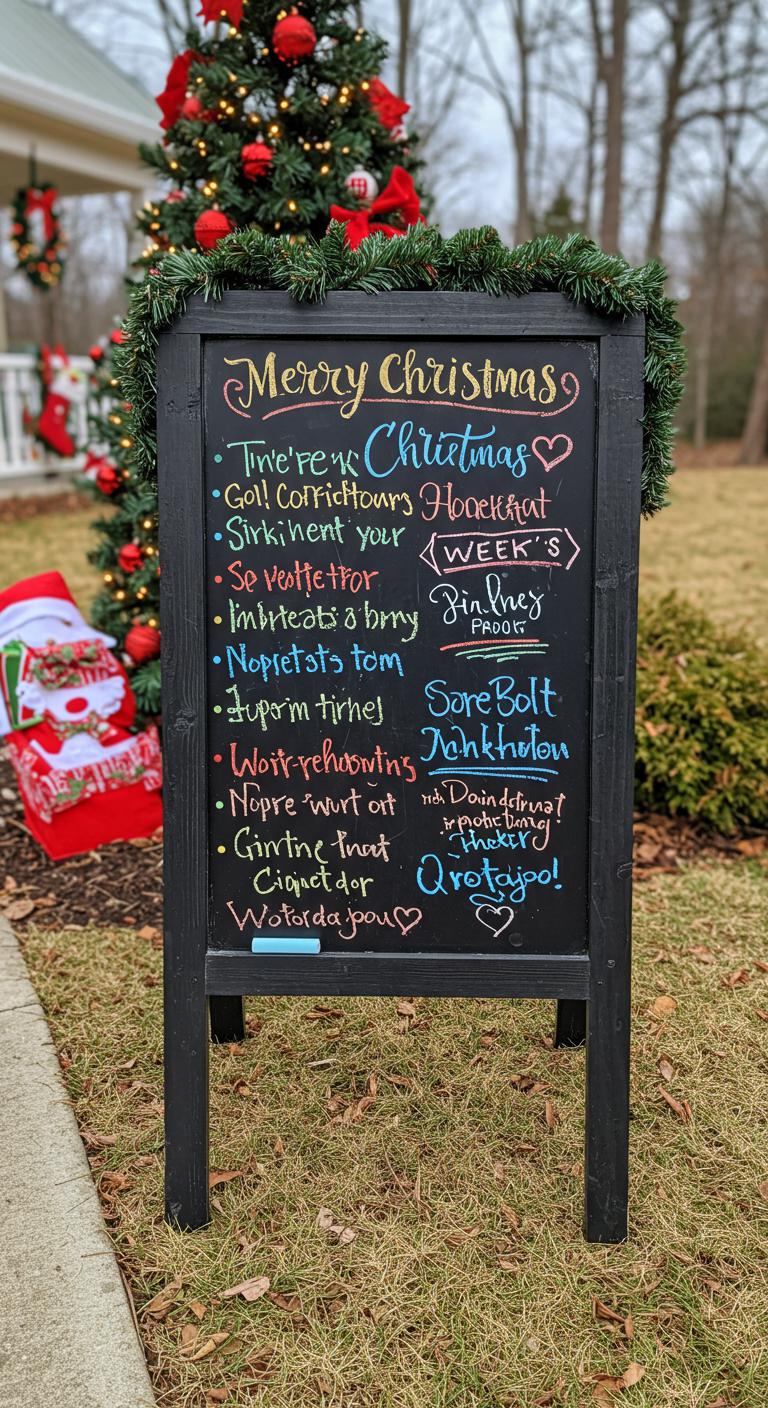 When you set up a chalkboard sign post, plan the height, placement, and weatherproofing first so your holiday messages stay visible and intact; choose a sturdy post and a chalkboard panel sized to read from the sidewalk, then mark the spot where it won’t block walkways or sightlines. Mount securely, seal edges, and pick chalkboard design ideas that suit your yard. Rotate holiday message inspiration weekly.