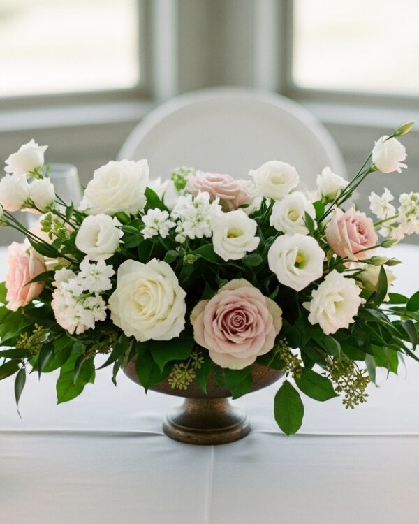This sweet vase setup with a lady at the table reminds me of grandma’s style – timeless and warm. Use a single statement vase with lush greenery or wildflowers for that personal touch. I recreated it for Mother’s Day tea; she teared up a bit, worth every second.