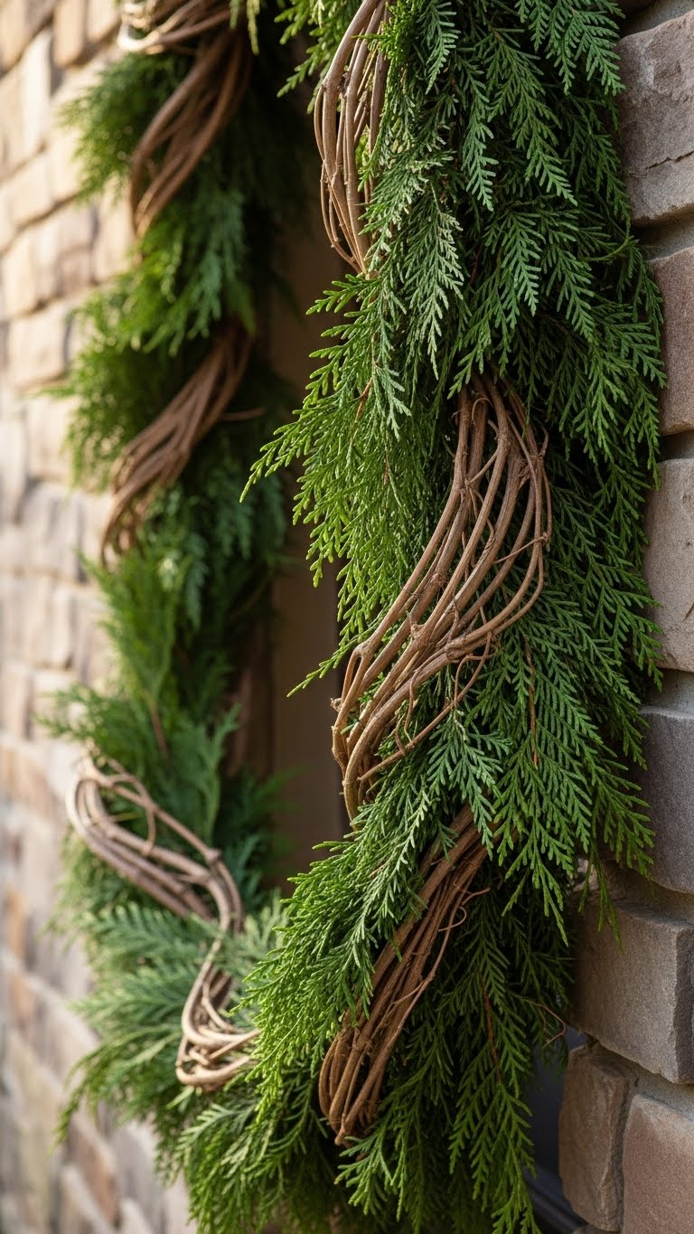 Collect cedar branches from outside. Weave them with grapevine strands. Tie together with string. Drape over entryways or stairs. This uses free materials from nature. Keep it simple for longevity. Add berries if available. Hang and enjoy the scent. It lasts weeks with care. Costs almost zero. No special tools required. Set up in 15 minutes. Fresh elements make it special. Dry them out for longer use. Perfect for welcoming guests. Bring the outdoors in easily.