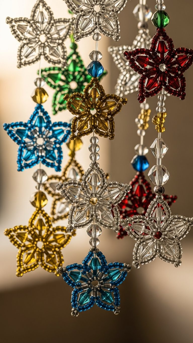 String beads into ornaments. Give as gifts. Use affordable beads. This is thoughtful. Quick to craft.