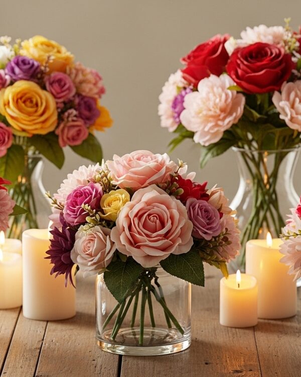 Simple roses in a clear vase scream elegance – grab these at Dollar Tree for under five bucks. I plopped one on my coffee table during girls’ night, and it instantly leveled up the vibe. Add a few fairy lights if you’re feeling extra.
