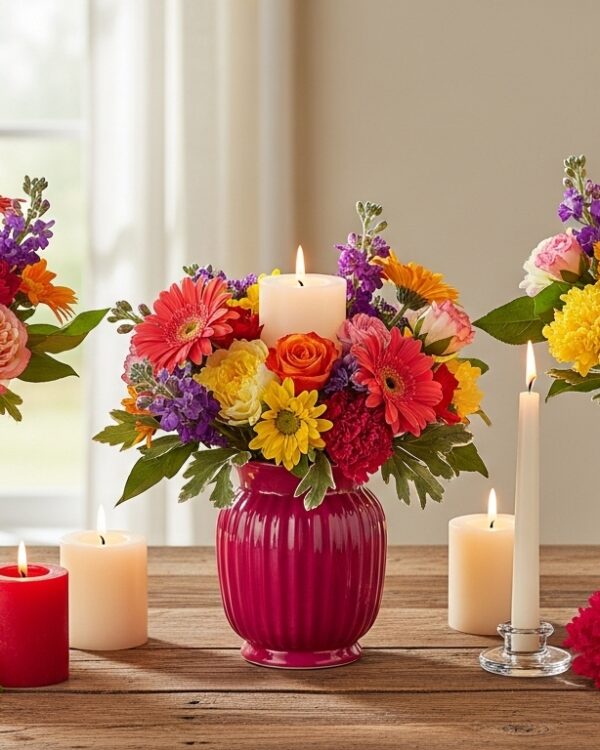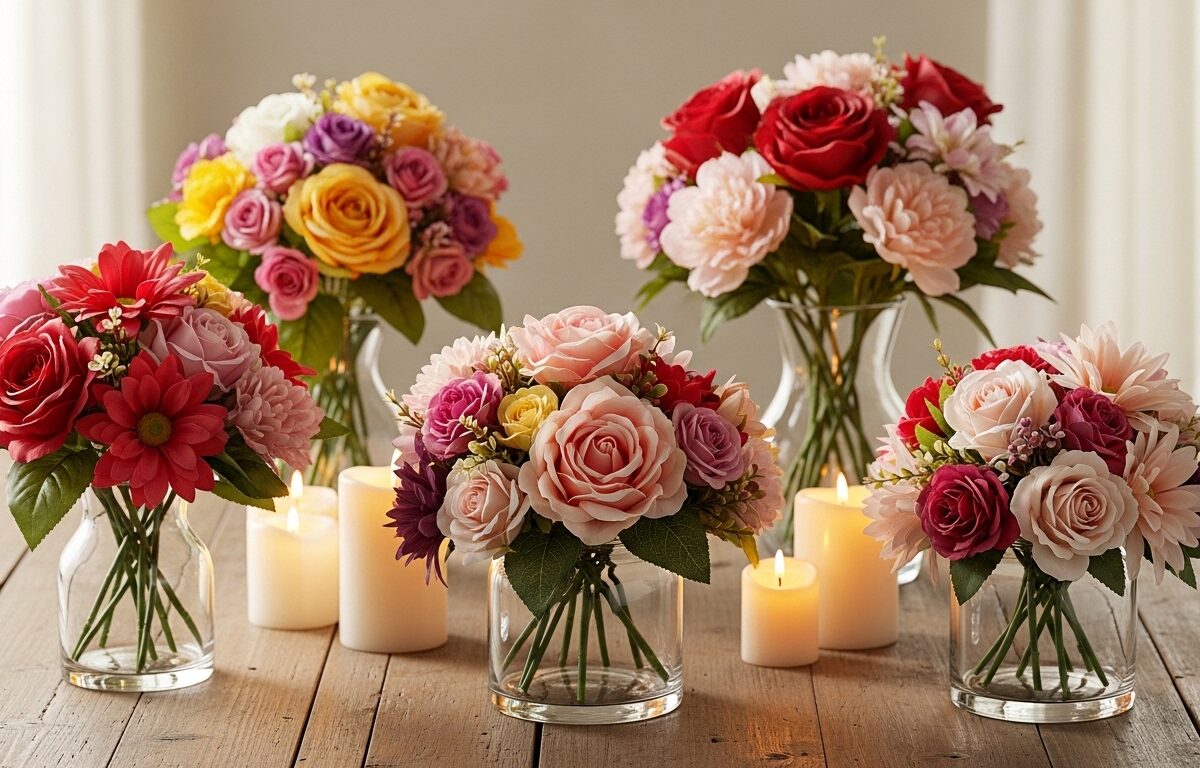 Start by hitting Dollar Tree’s floral aisle early – snag vases, faux stems, and candles before they’re gone, ’cause they fly off shelves around holidays. Layer low to high on a tray for that designer depth; I always add greenery first, then pops of color like roses or whatever’s bright that week. Mix textures too – glass with metal baskets keeps it from looking flat, and spritz everything with water for that fresh-picked dew; did this for my sister’s baby shower and it photographed like a dream. Play with heights so your centerpieces frame the table without blocking chats, and boom – you’re the hostess with the mostest every time.