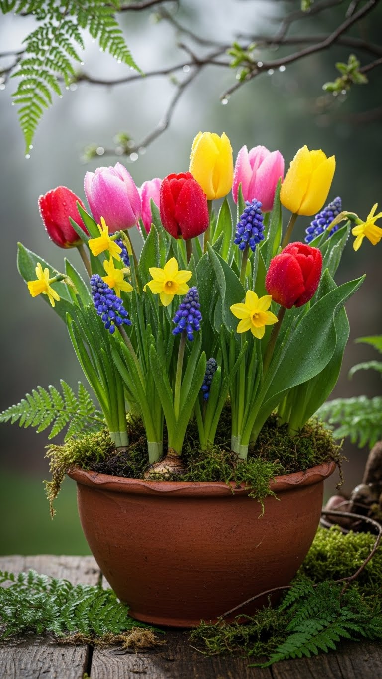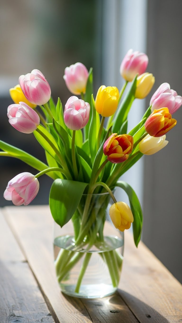 Group blooms in odd numbers for a natural look. Add water right away. A basic DIY: Combine tulips with nearby weeds. Put it on a porch for outdoor charm. This style highlights what’s in season. Keep supplies under $5 using what you have. Display at home for real authenticity. Simple tweaks make it your own.