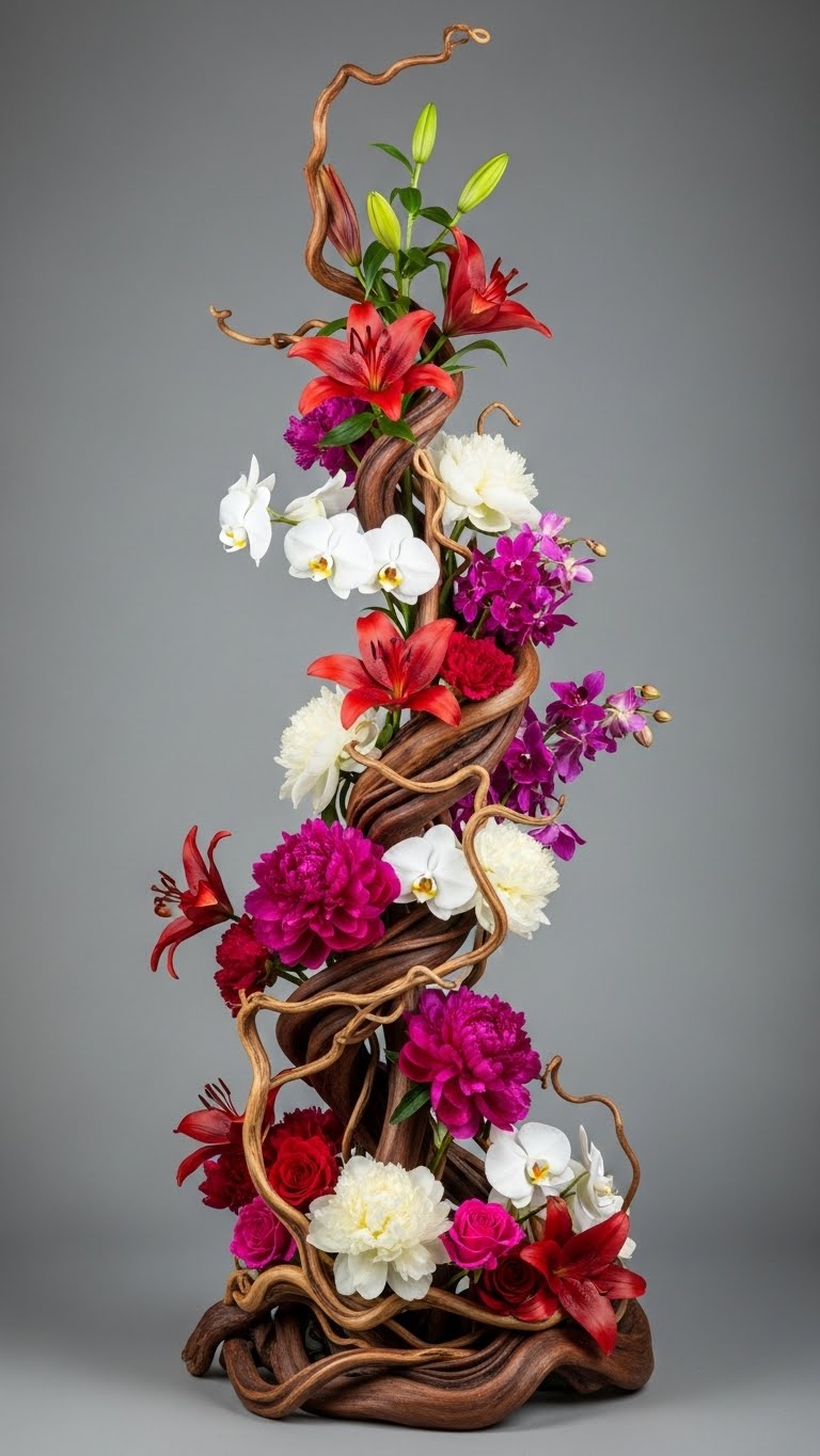 Twist stems before arranging. Add flowers like lilies. Form a central piece. This adds rhythm to setups. Twist branches from your yard to cut costs.