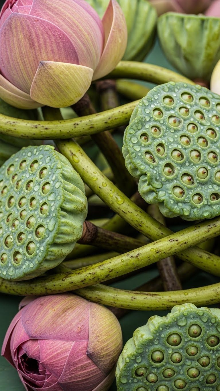 Add lotus to other blooms. Place in a bowl. This brings unique texture. Look for affordable pods online.
