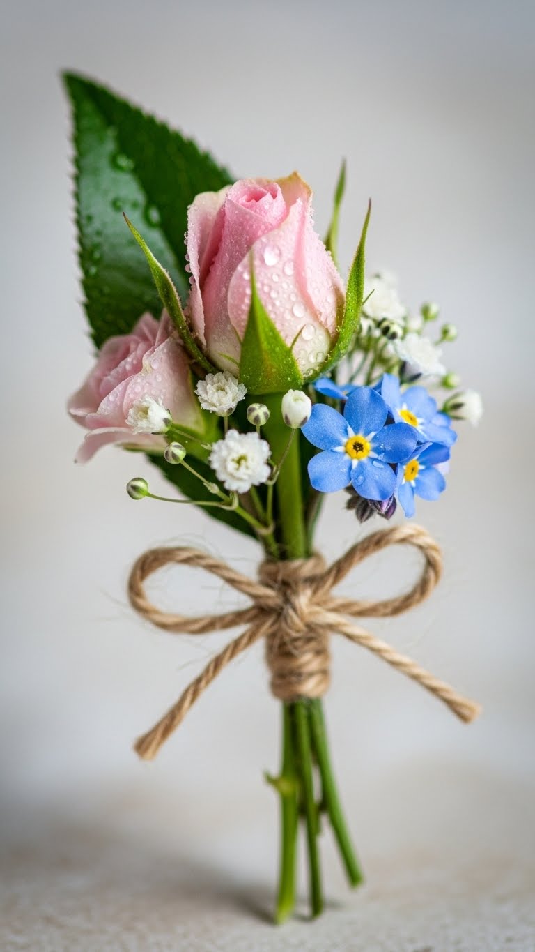 Grab a few stems of miniature roses and mayweed from your local market. Start by trimming the ends at an angle for better water absorption. Bunch them loosely for that effortless look. Tie with twine to keep it simple. This style works great for early spring tables. Add water to a clear glass vase to keep flowers fresh longer. For a budget tip, use wildflowers from your yard instead of store-bought ones.