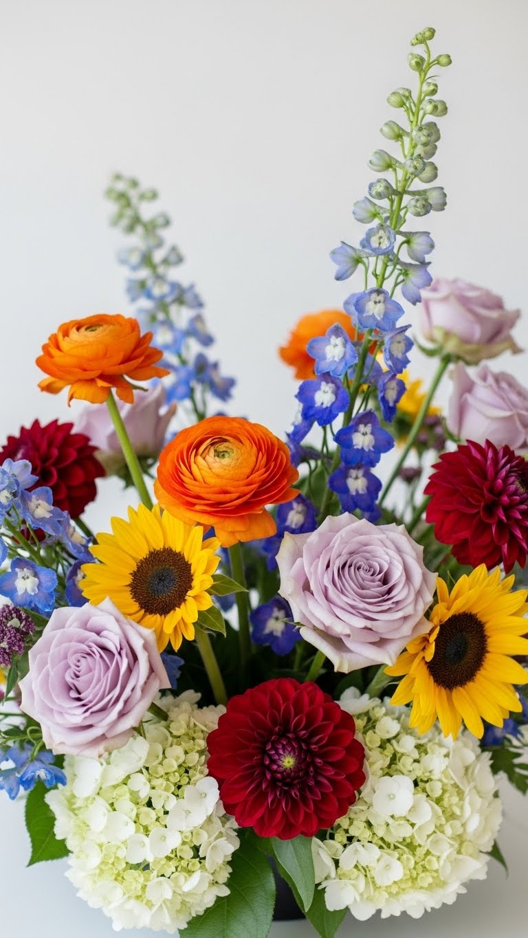 Center with lilies and dahlias. Build around them. This creates focus. Opt for sales on bold ones.