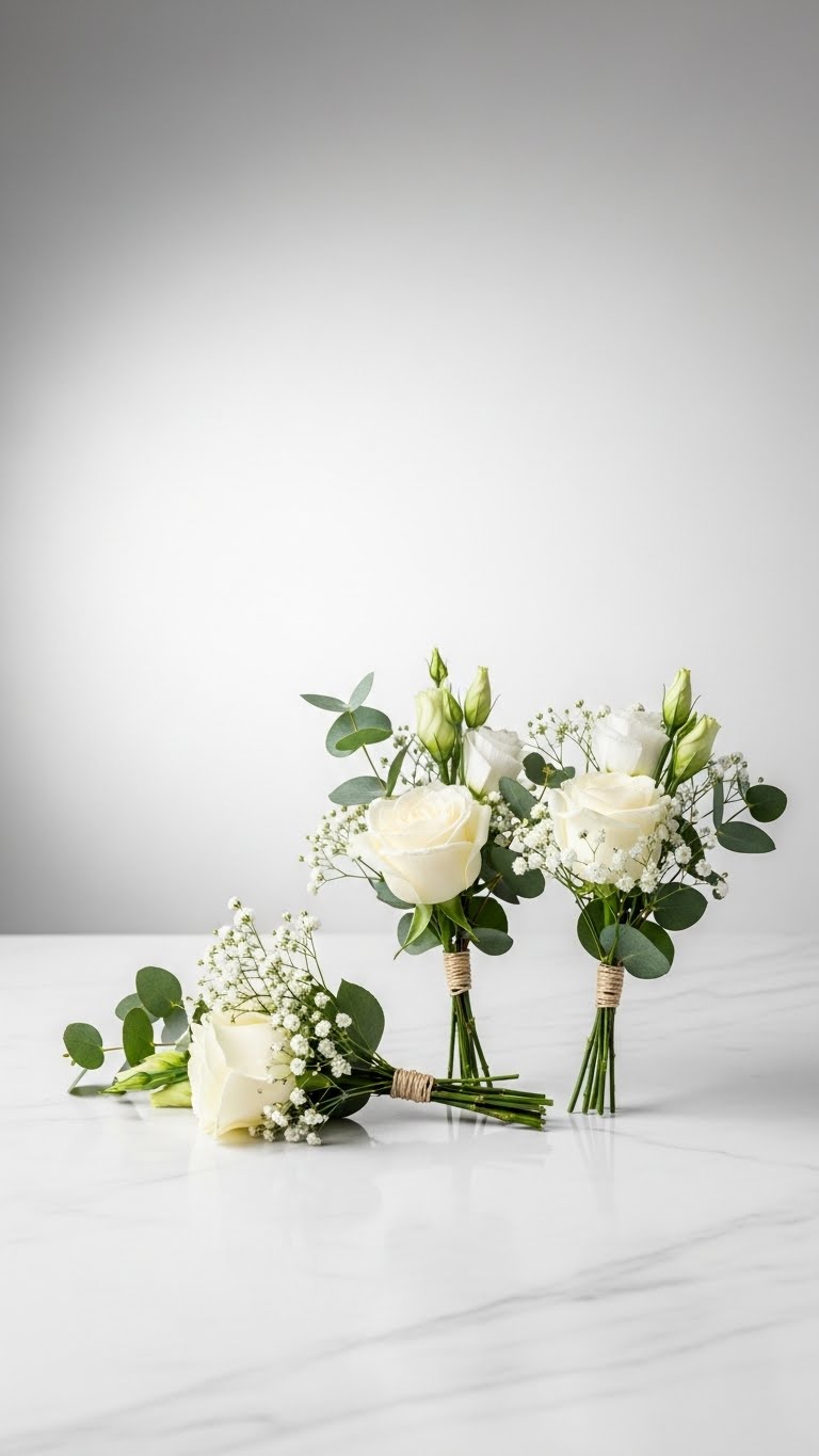 Use only white flowers. Group neatly. This offers timeless appeal. Buy in bulk for deals.