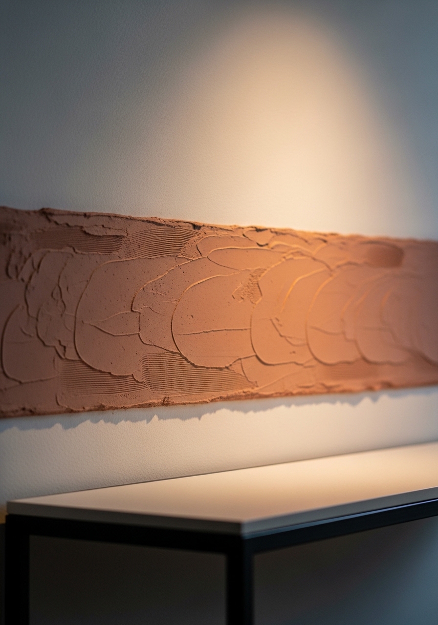 I ran a thin band of clay-tinted paint across a hallway wall. The texture catches light and makes the space feel intentional. Use a sand additive for subtle grit and compliment with large round mirror. Mistake: making the band too wide — keep proportions slim.