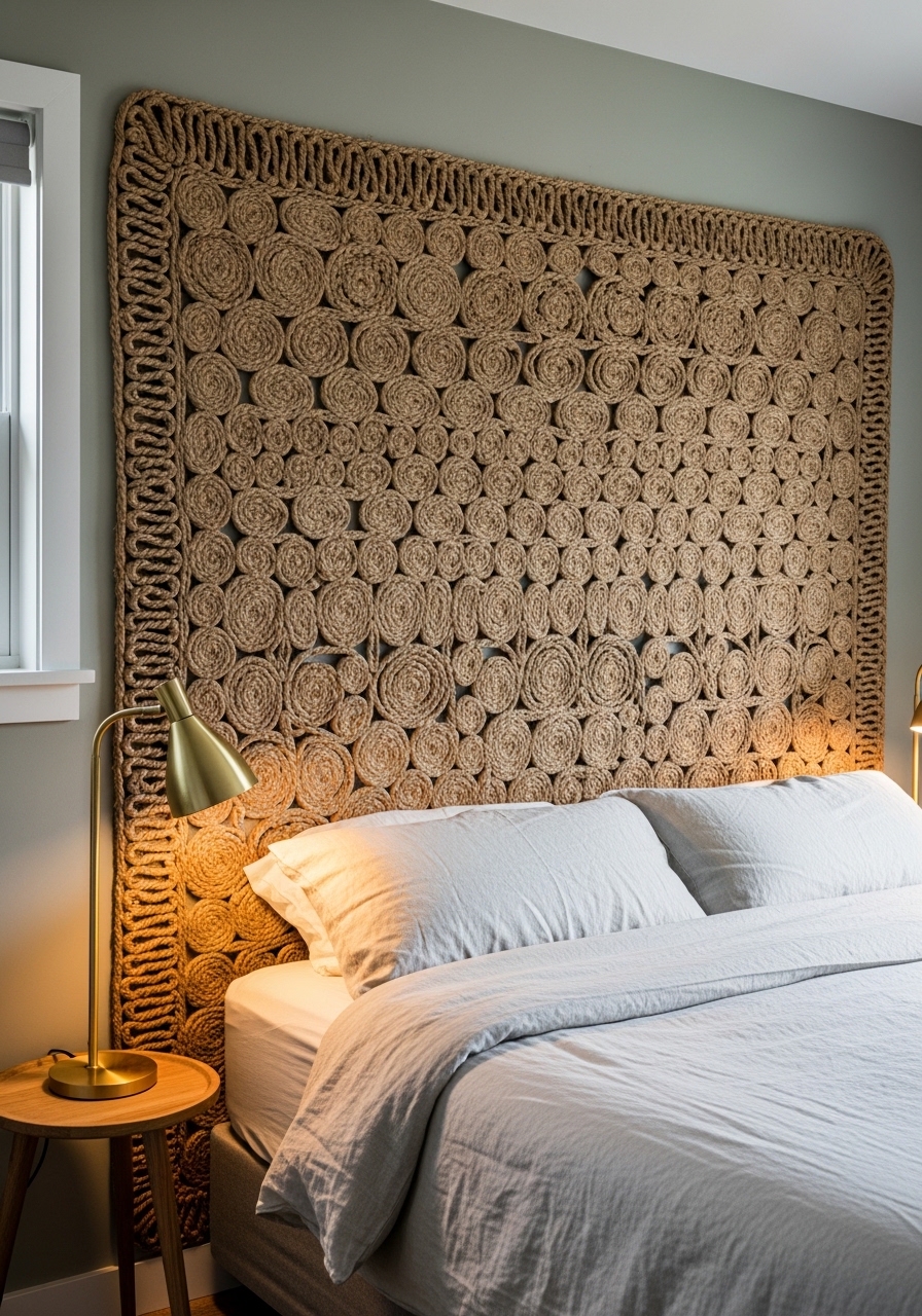 Woven Jute Panel as Statement Headboard Wall — Rustic Bedroom