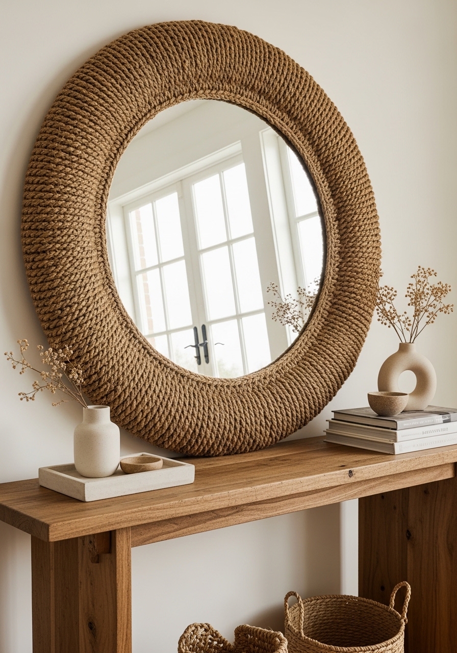 Oversized Round Mirror With Woven Frame to Brighten Corners — Coastal/Midcentury