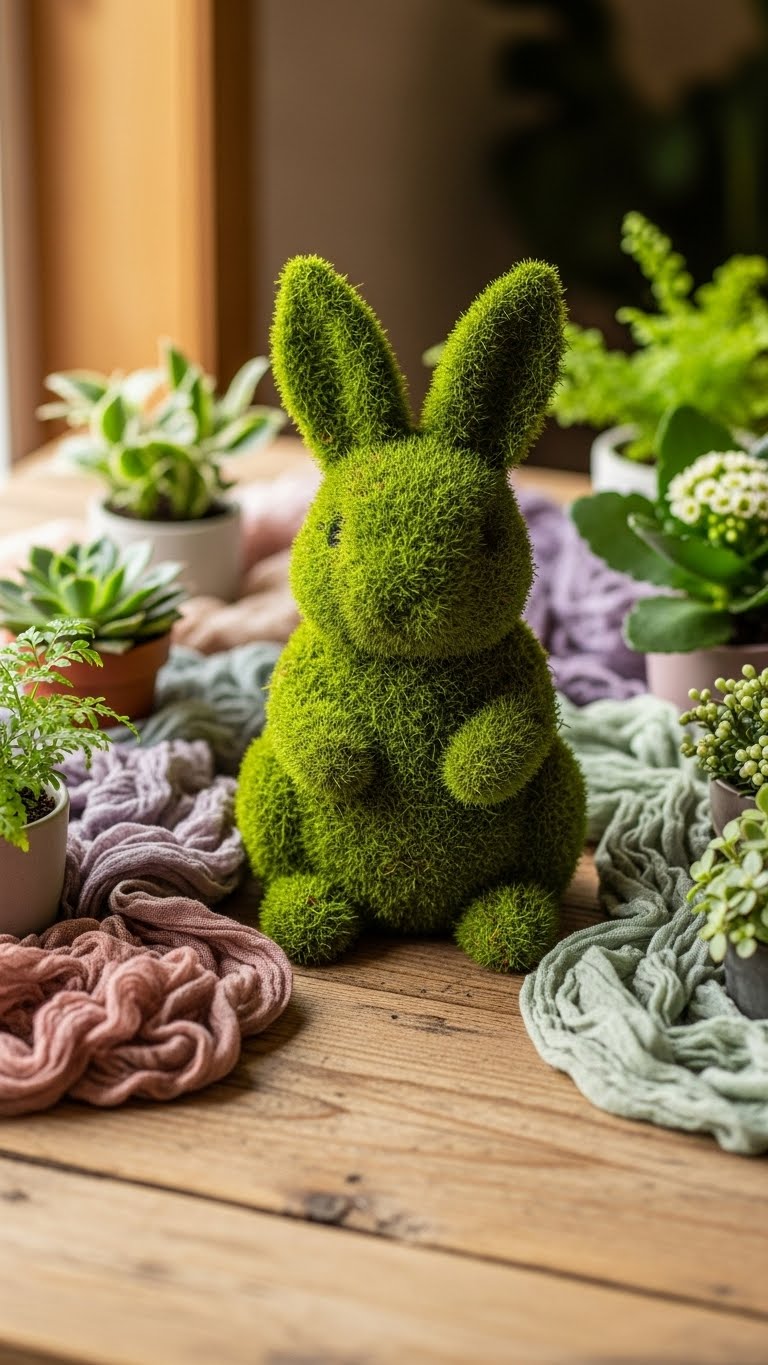 Grab some moss from your yard or a local store. Start with a simple bunny figurine. Glue the moss on for a natural look. This takes under 30 minutes. Use hot glue for a strong hold. Keep costs low at under $5. Try this DIY: Coat the bunny in a mix of water and glue, then press moss pieces on. Let it dry overnight. Place it on your mantel for instant appeal. Add fairy lights for extra glow. This idea fits any budget. Mix with other greens for a fuller scene. Enjoy how it brings the outdoors in. Make it a family activity. Kids love the texture. You’ll have a unique piece ready for Easter brunch.