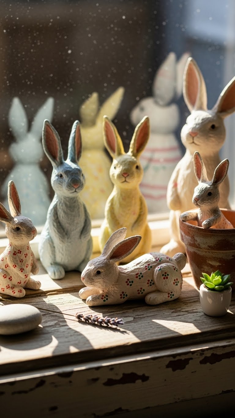 Use toy bunnies and eggs. Mix and match them. Place in scenes. This is family-friendly. Grab from toys. Display everywhere. Try this: Group by color. Change for fun.