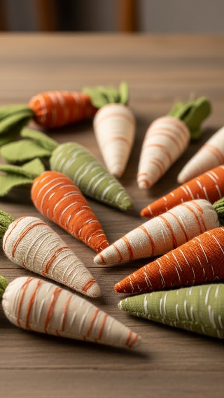 Sew simple carrot shapes. Use old fabric. Stuff lightly. This adds cuteness. Keep materials cheap. Set with decor. Try this: Stitch quickly.