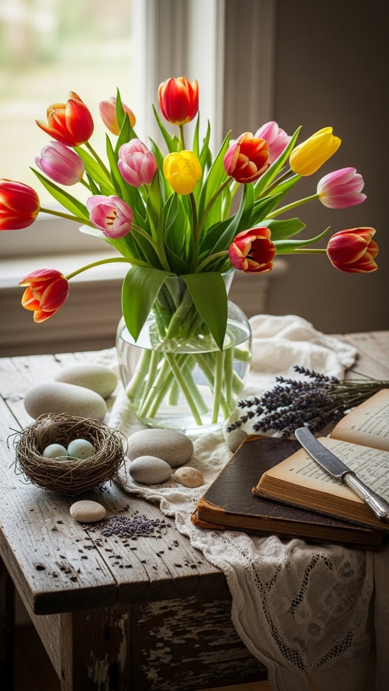 Add tulips or rabbits. Use from gardens. Arrange casually. This feels country. Keep it real. Display freely. Try this: Group naturally.