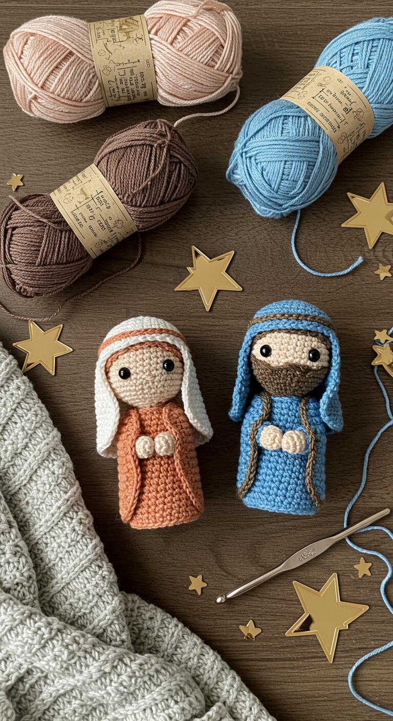 For this simple Nativity figurine set, you’ll crochet Mary and Joseph in a few small pieces and assemble them with easy sewing and minimal shaping, following photo-rich steps that keep each stitch clear and quick; you’ll pick yarn colors, make basic amigurumi heads and bodies, add simple robes and head coverings, and finish by securing faces and tiny felt details so the pair looks charming on your mantel or tabletop.