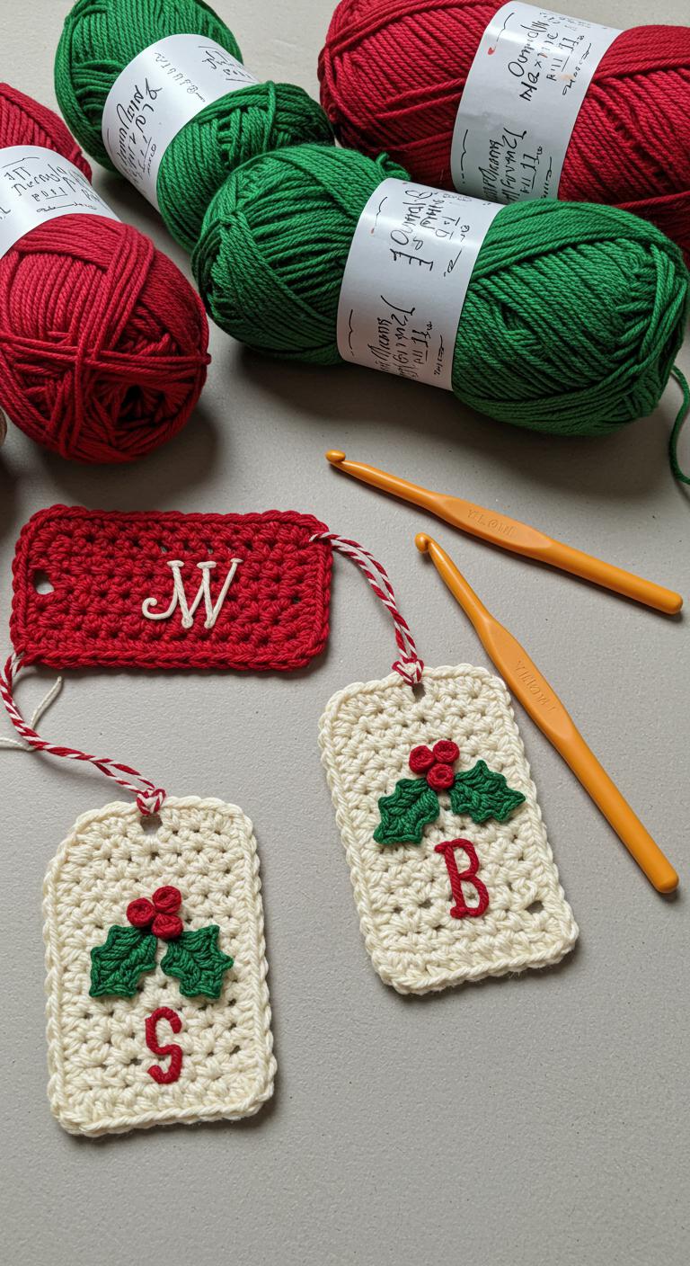 You’ll follow quick steps with photos: choose yarn choices, crochet simple shapes, add initials for personalized tags, and stitch on festive embellishments.