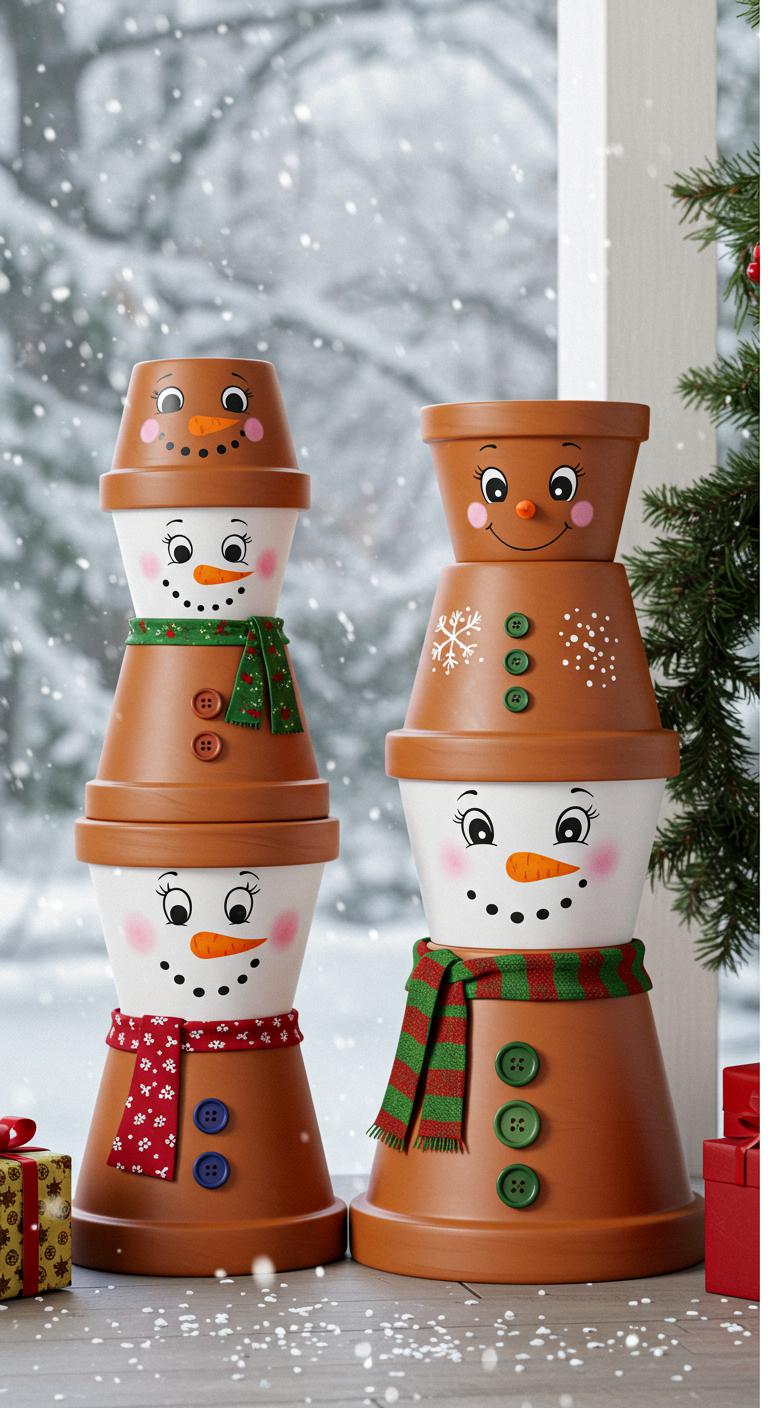 When you paint terra cotta pots into snowmen, you get charming, weatherproof porch accents that are easy to customize and stack for height.