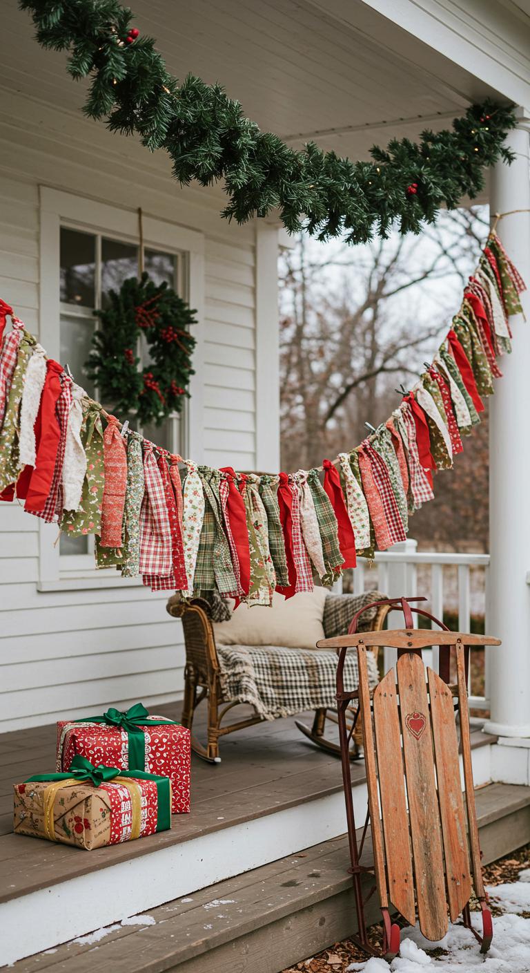 If you liked the vintage sled’s mix of function and old-world charm, you can carry that same aesthetic across your porch with an outdoor fabric garland topped with waterproof bows. Choose durable outdoor fabric, cut uniform strips, and knot them on a jute rope for flow. Finish with waterproof bows secured by stainless clips. Hang low for wind resilience and easy removal.
