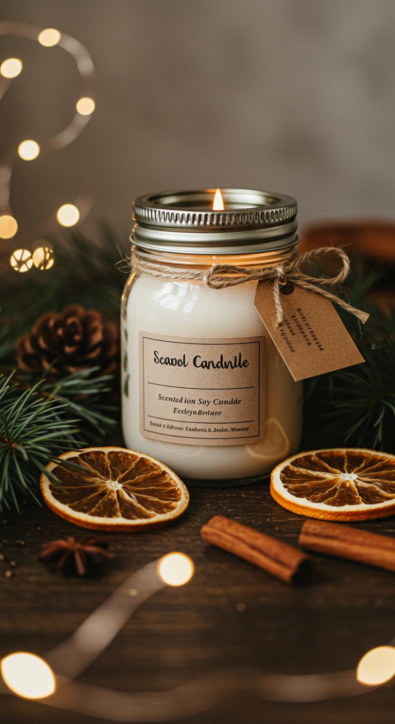 A scented soy candle in a mason jar makes a cozy, handmade gift that’s both beautiful and practical.