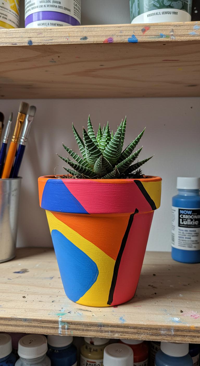 A painted terracotta planter brightens any shelf and gives a small succulent a stylish new home you can personalize in minutes.