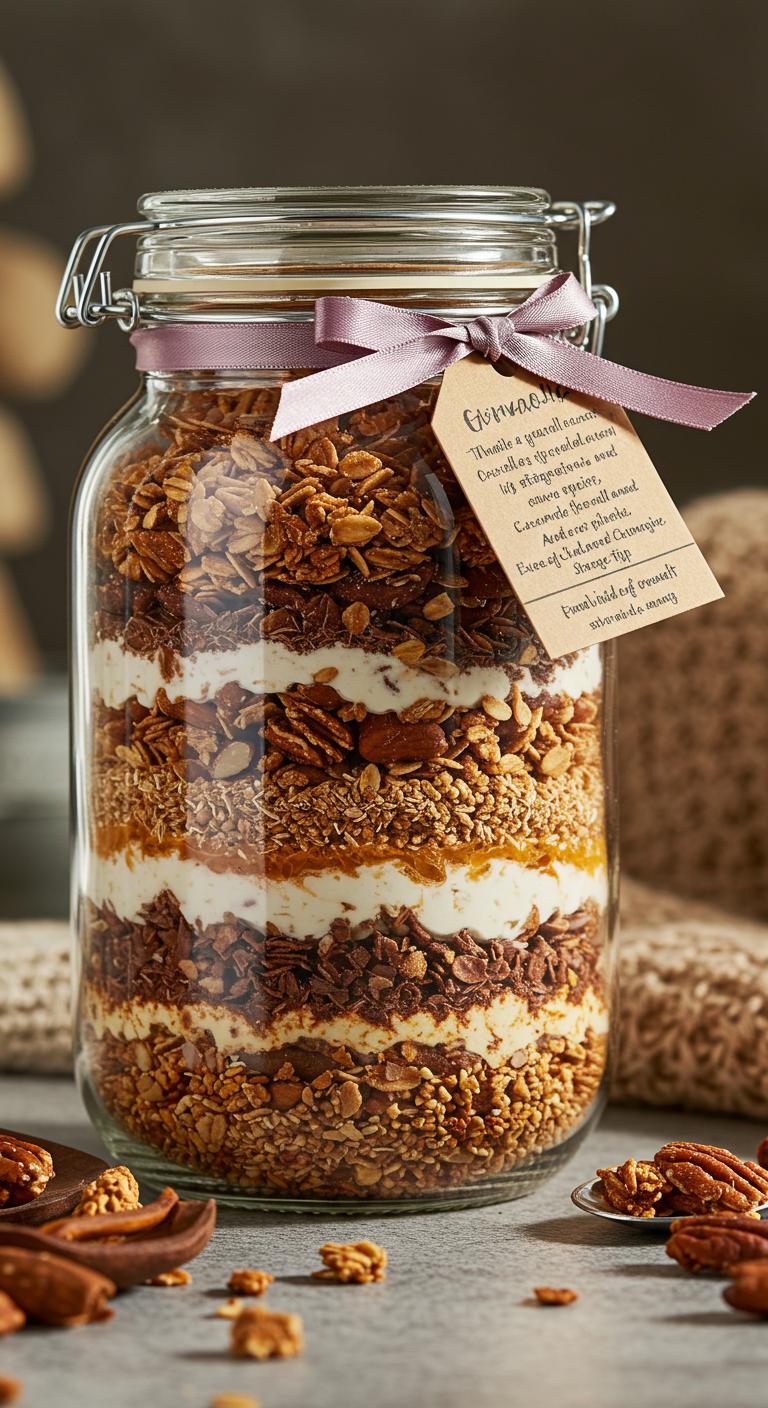 Choose granola variations—maple‑pecan, coconut‑almond, or spicy chai—layering colors and textures.