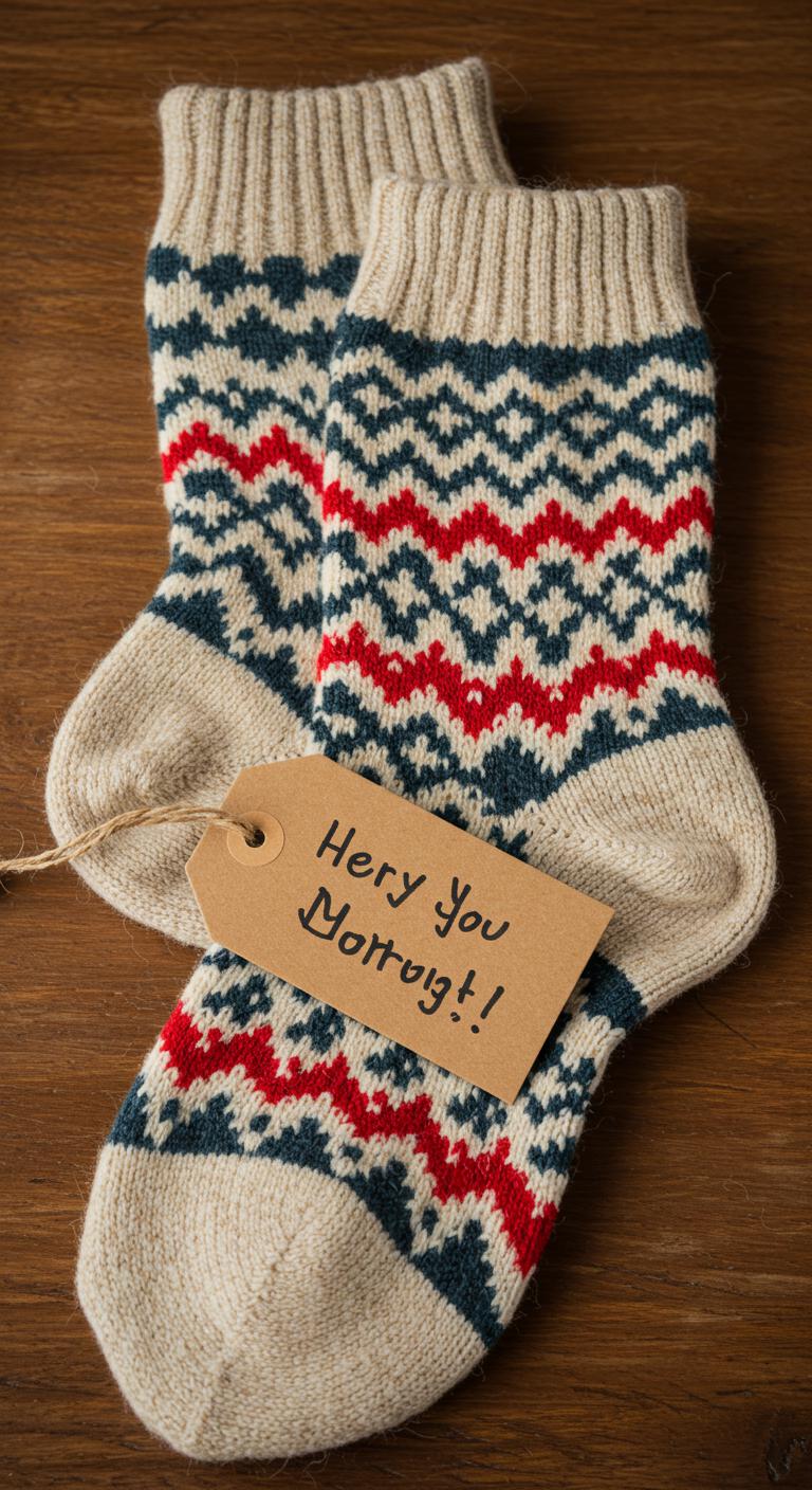 Warm Woolen Socks With a Handwritten Tag