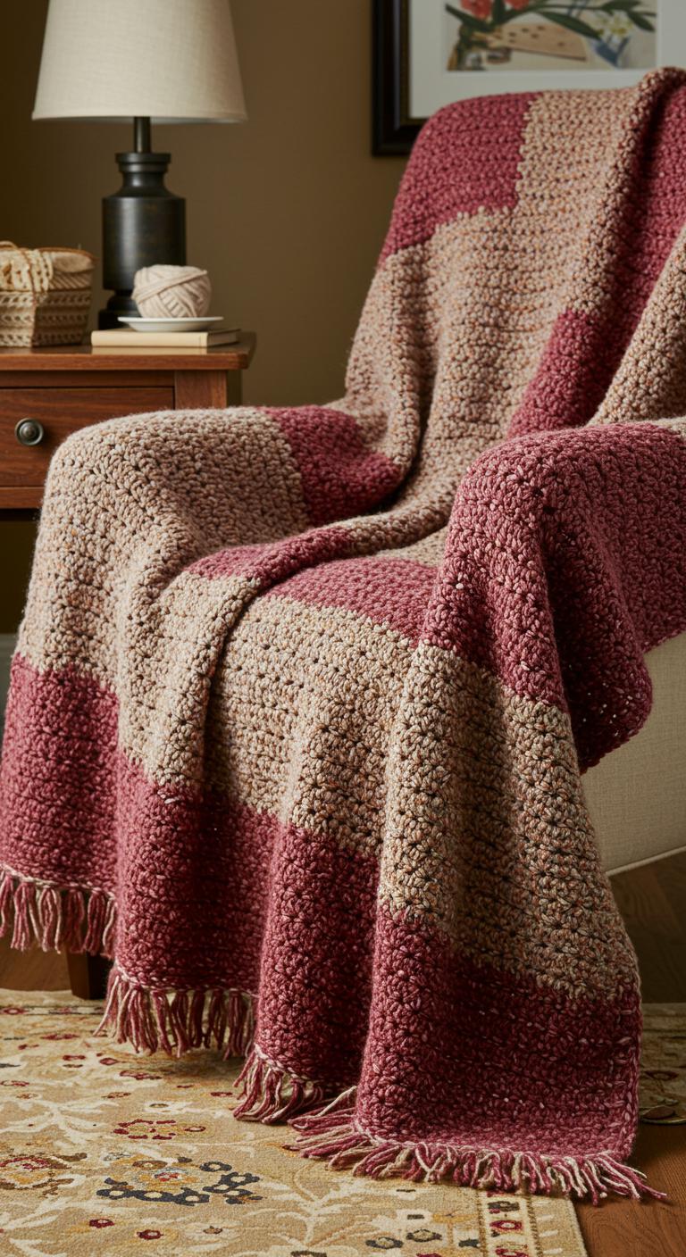 You’ll enjoy freedom to improvise borders or fringe, test drape on a chair, and finish with neat edges so the blanket looks polished and intentional.
