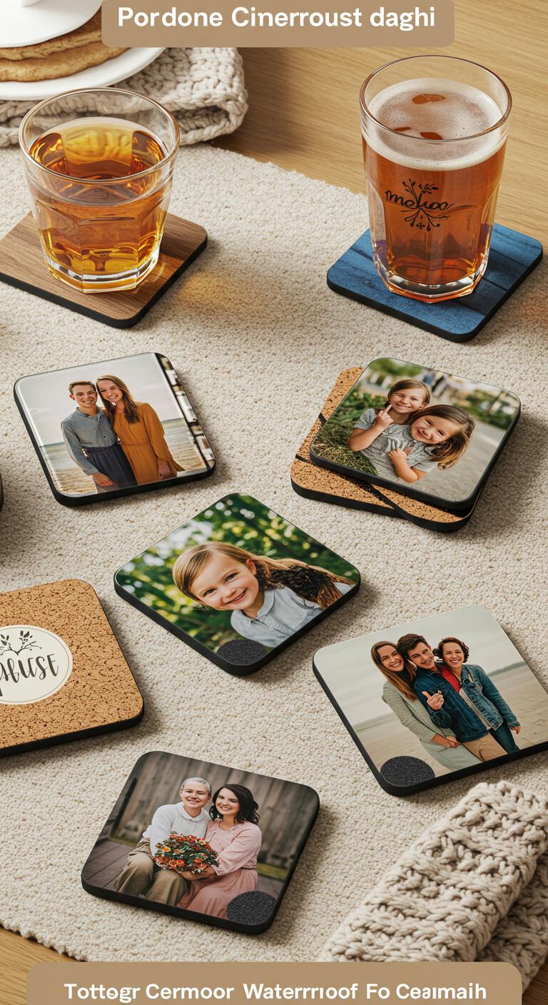 You’ll pick favorite images, arrange personalized designs, and select coaster materials like cork, wood, or ceramic.