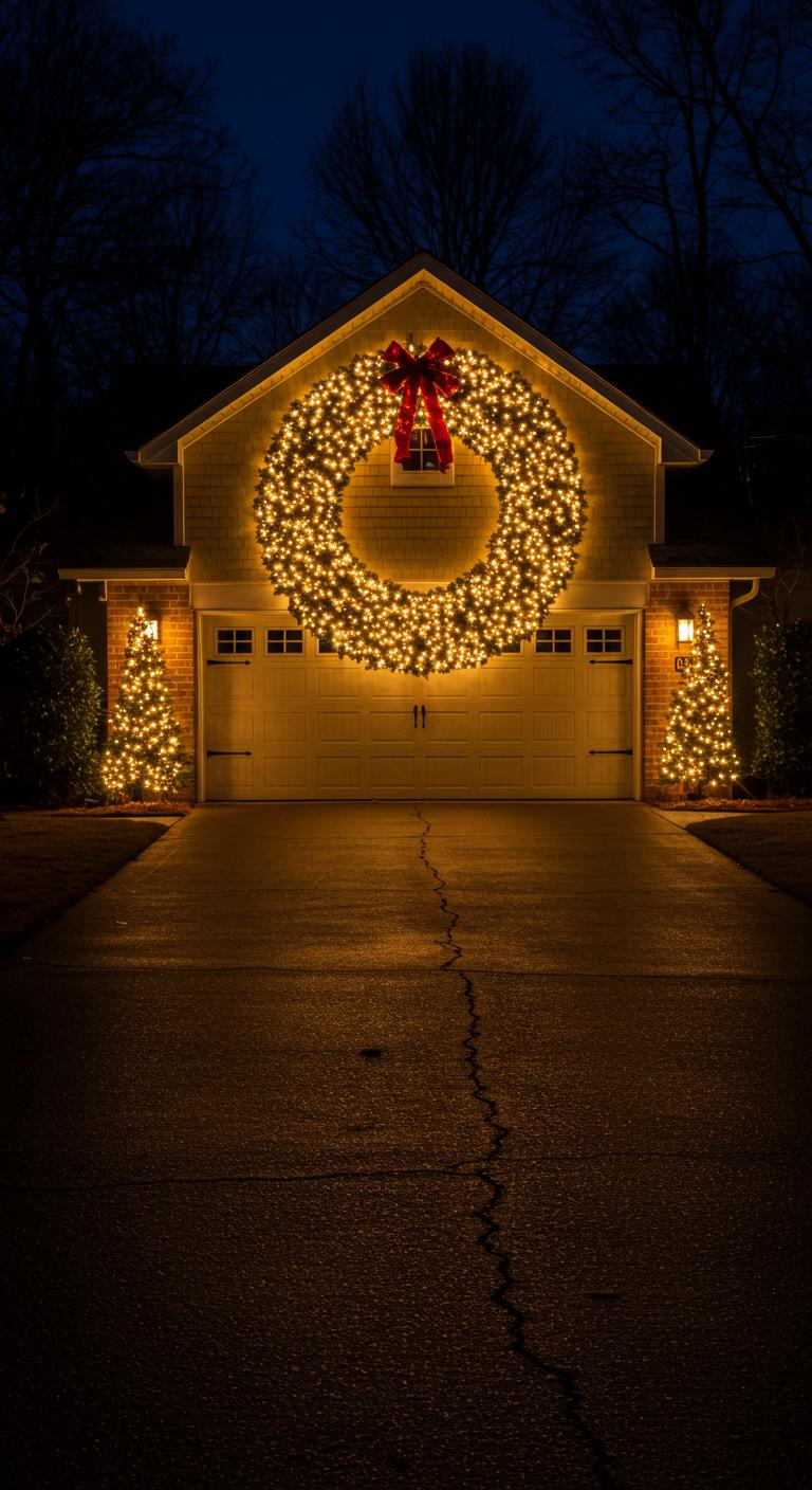 A giant illuminated wreath can turn your driveway into a welcoming, festive entryway that’s visible from the street; place it where passing cars and guests will see its scale and light pattern.