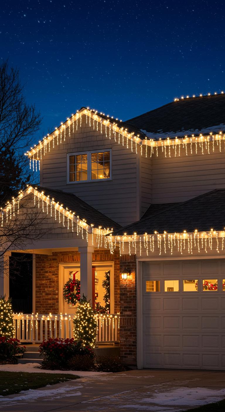 Cascading Icicle Lights Along Rooflines