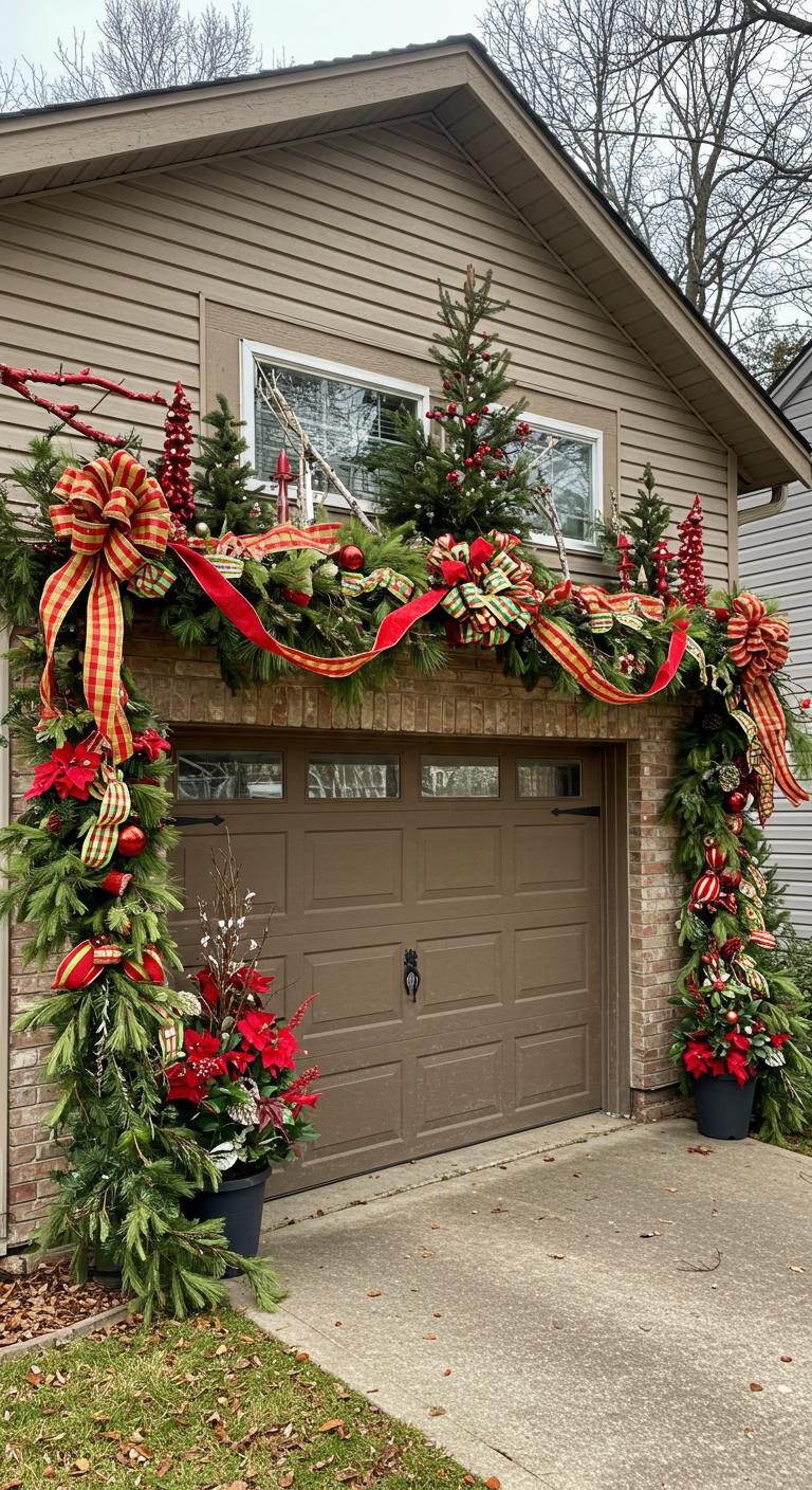 Think of your garage lintel as a wide mantel you can dress for the season; you’ll want decorations that read clearly from the curb while standing up to wind and weather.