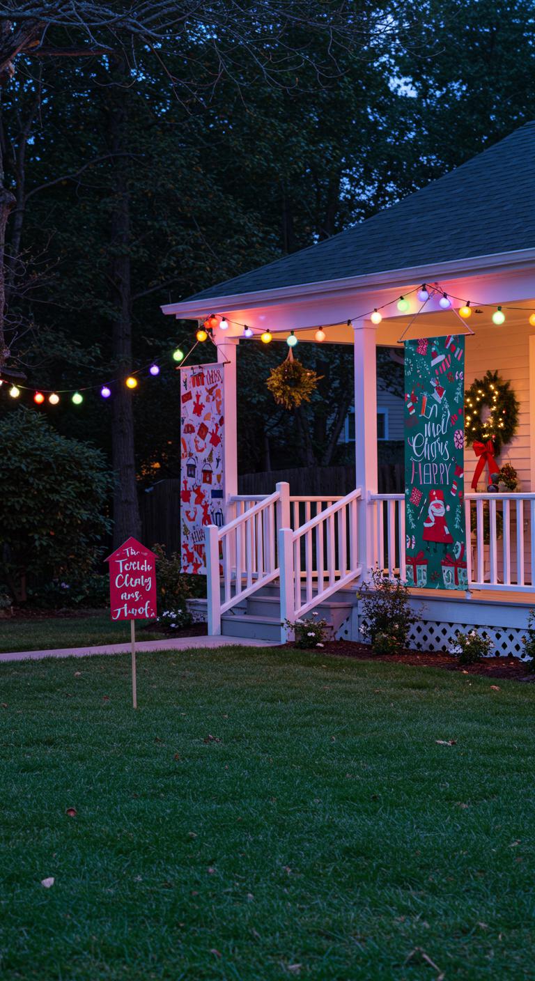 You’ll choose bold outdoor color schemes and layered, festive texture combinations — garlands anchored with weighted hooks, weatherproof ribbons, hardy evergreens, and sculptural accents — so your display feels adventurous, clear, and built to last.