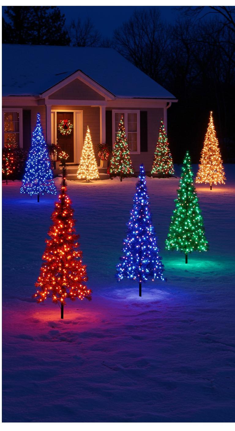 Tall LED trees can transform your front yard into a striking holiday landmark, guiding guests from the curb with bright, energy-efficient color and clean silhouettes.