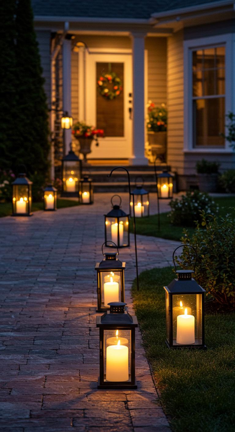 Line up lanterns at regular intervals to guide guests with a warm, steady glow that reads as intentional from the curb to your front door.