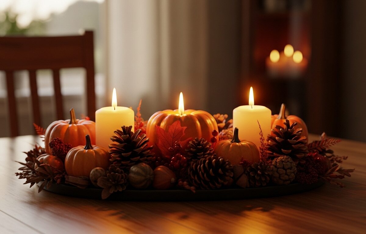 Grab a wooden tray, toss on mini pumpkins, pinecones, and tea lights – done in 10 minutes. It’s forgiving and smells amazing. You’ll feel like a pro instantly.