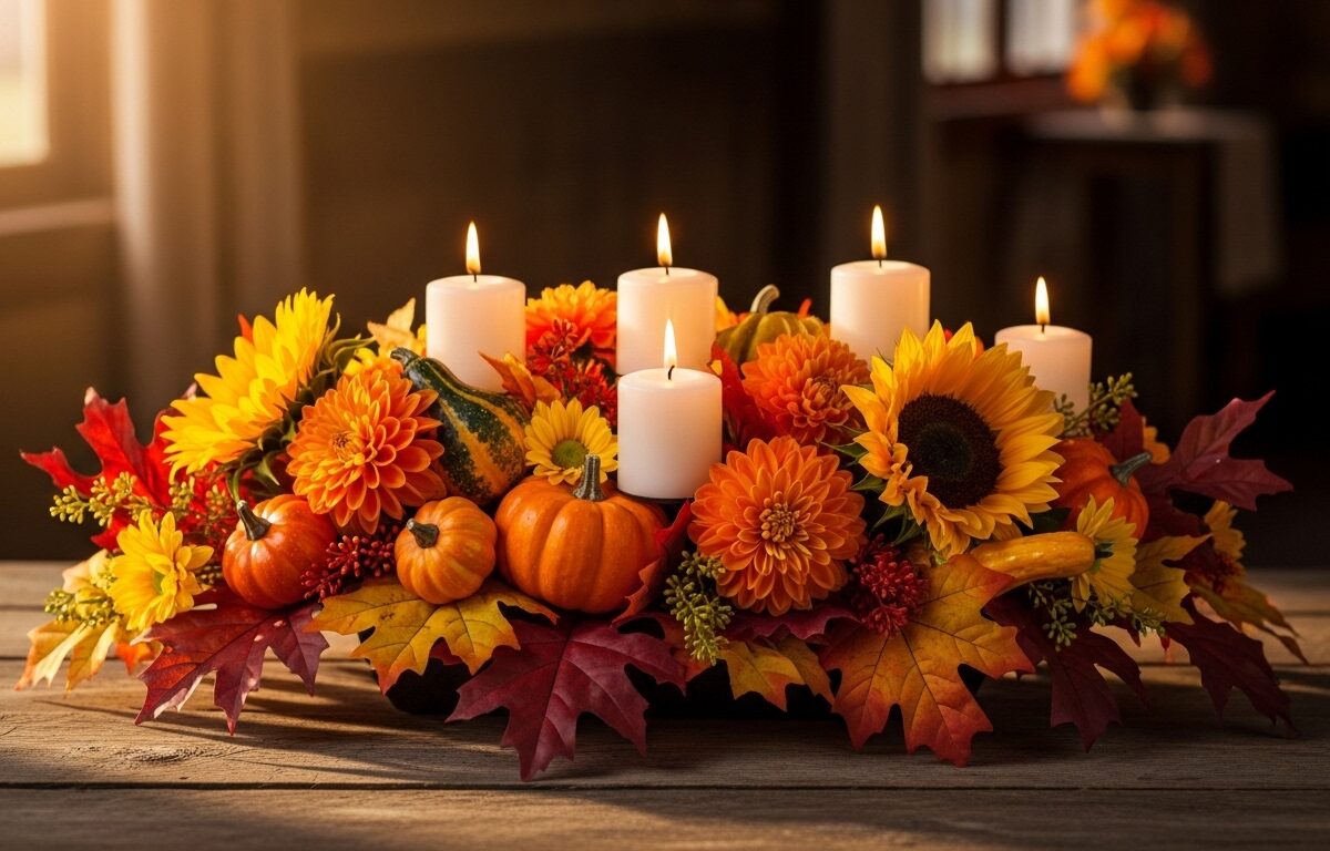Okay, real talk – start by hitting up your local farmers market or even the grocery floral section for in-season stuff like mums and dahlias that scream fall without the hefty price tag; mix ’em with freebies like acorns or branches you snag on a walk. Layer low vases or jars with candles in the center for that safe glow, then fluff in leaves or pinecones around the edges so it feels abundant but not cluttered – I always add a personal touch like a cinnamon stick for scent. Oh, and test on your table first during daylight; tweak heights so convo flows easy across. Scale for your space – coffee table gets mini, dining gets epic. You’ll feel like a pro after one try, promise.