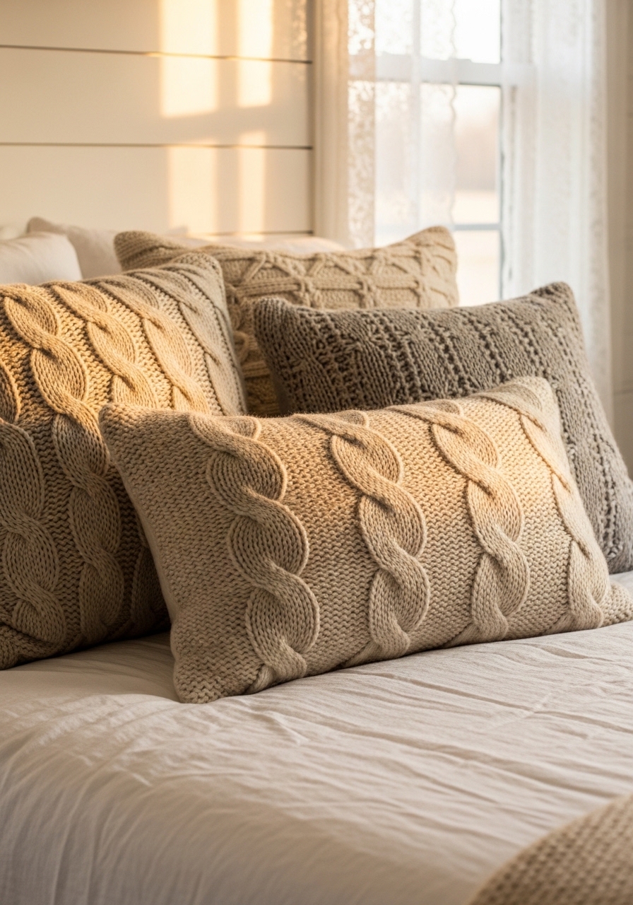 Scattering textured throw pillows like knits or fringes can amp up the cozy factor without much effort. In my bedroom, I mix a few patterns, and it feels so layered and inviting, especially on chilly evenings. You might source them from local markets for that authentic farmhouse touch.