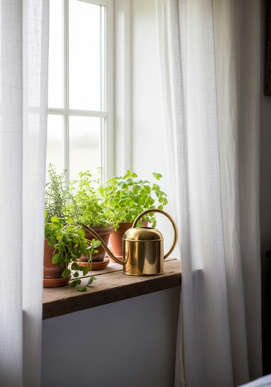 Setting up a small herb garden on your windowsill infuses the room with natural scents and a touch of green life. I started one with basil and mint, and it makes the space smell amazing while tying into that farmhouse freshness. It’s low-maintenance and adds a practical, cozy element you can actually use in the kitchen.