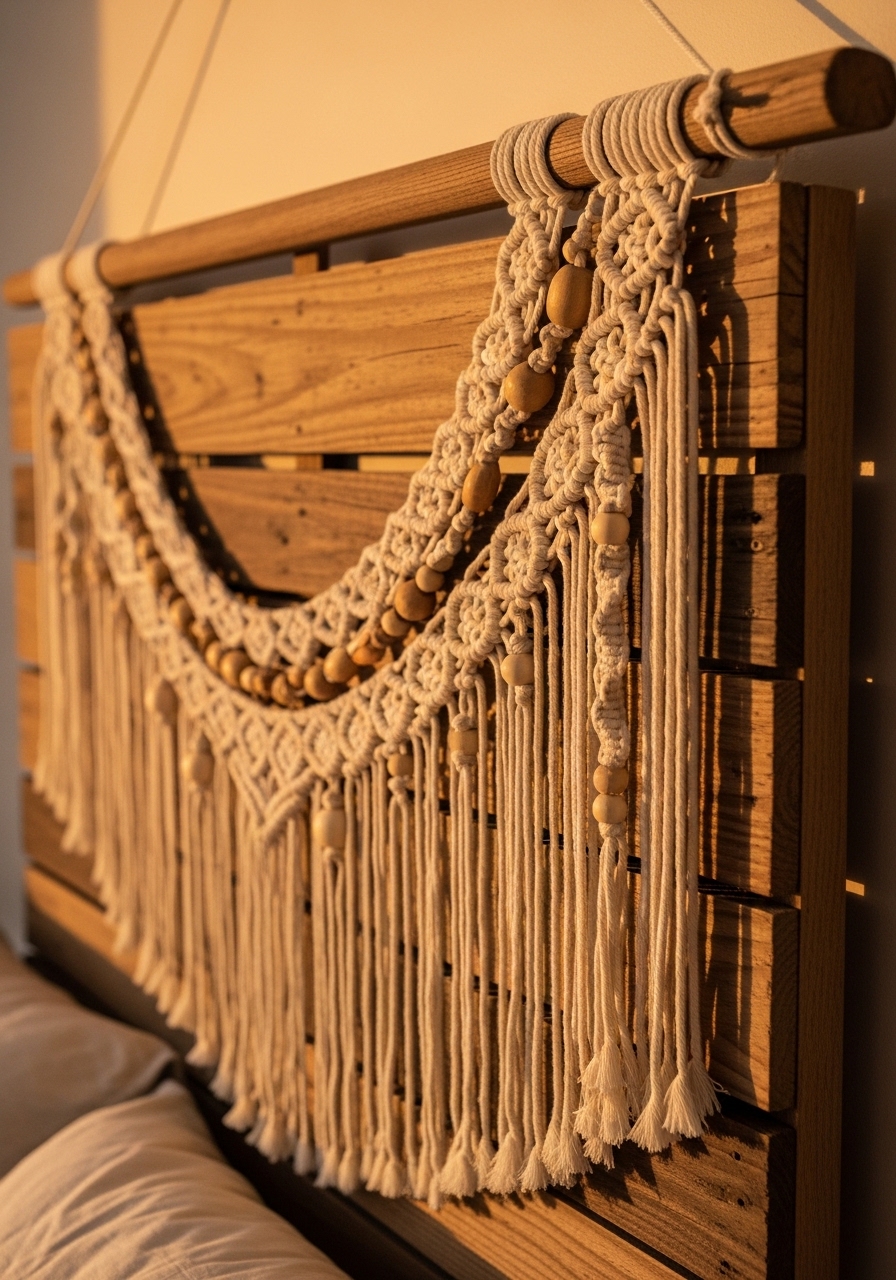 Grab some cotton rope from the craft store and knot up a simple macrame piece to hang above your bed for that boho-farmhouse fusion. It’s under $10 and adds so much texture. I made one last weekend while watching Netflix, and it totally softened my plain walls – imperfect knots and all, it looks handmade chic.