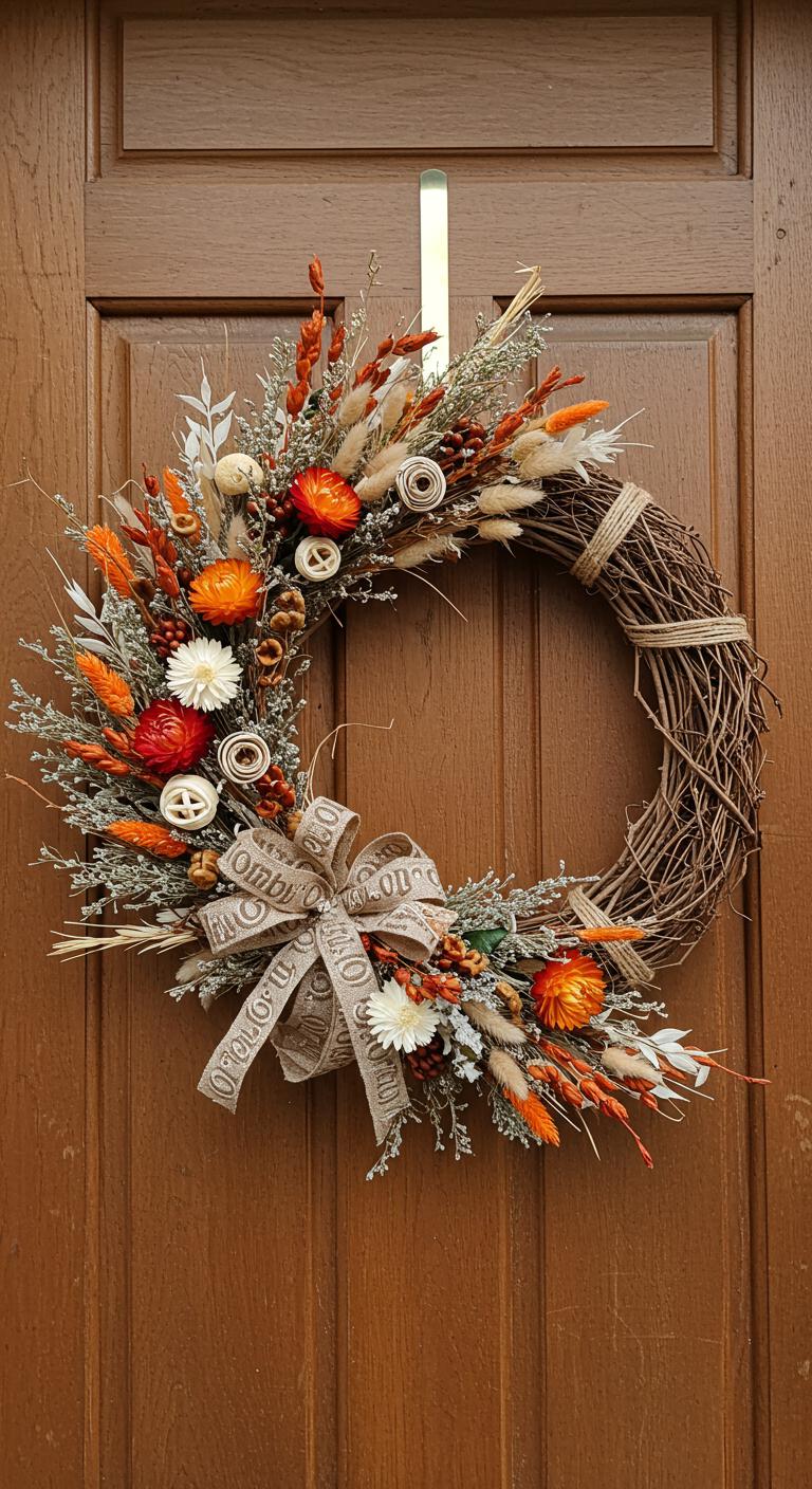 As you prepare your home for the holiday season, consider adding a rustic wreath adorned with natural accents to create an inviting entrance.