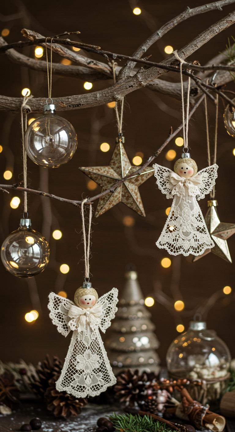 Think glass baubles, tin stars, or delicate lace angels. For unique ornament display ideas, hang them from rustic branches or create a charming garland.