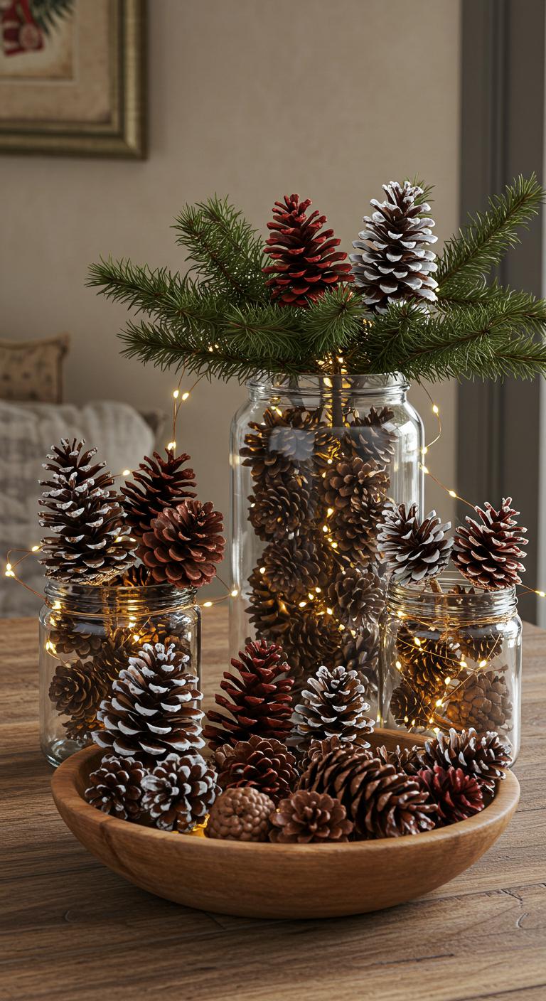 Gather varying sizes of pinecones, paint them in festive hues, or leave them natural. Nestle them in wooden bowls or glass jars for seasonal displays.