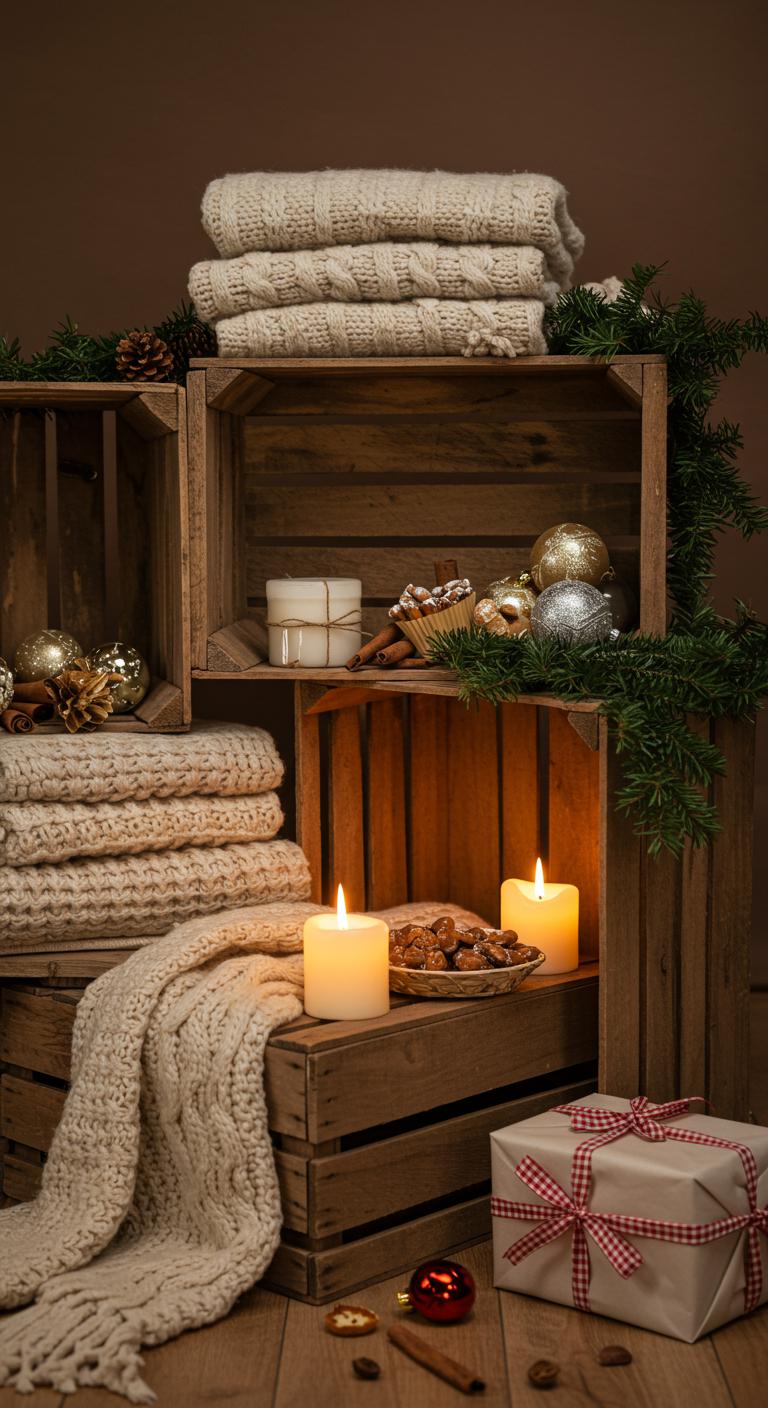 You can even transform a crate into a festive centerpiece, showcasing candles or festive treats.