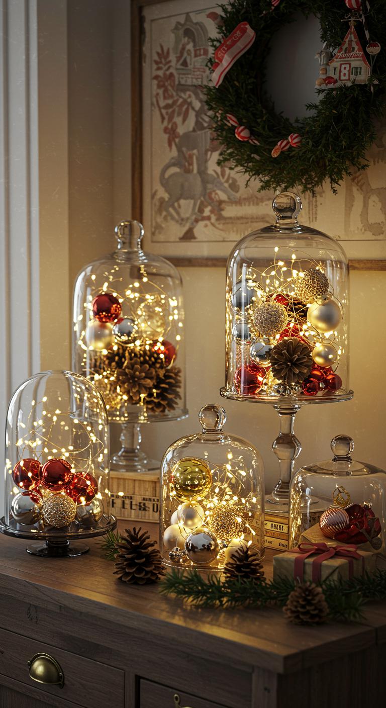 There’s something truly enchanting about vintage glass cloche displays, especially during the holiday season.