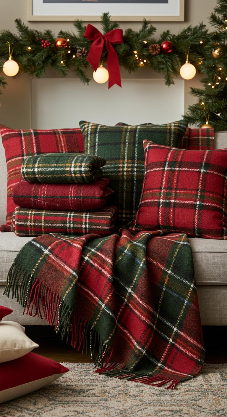 When you want to create a warm and inviting atmosphere for the holidays, cozy plaid throws and pillows are the perfect accents.