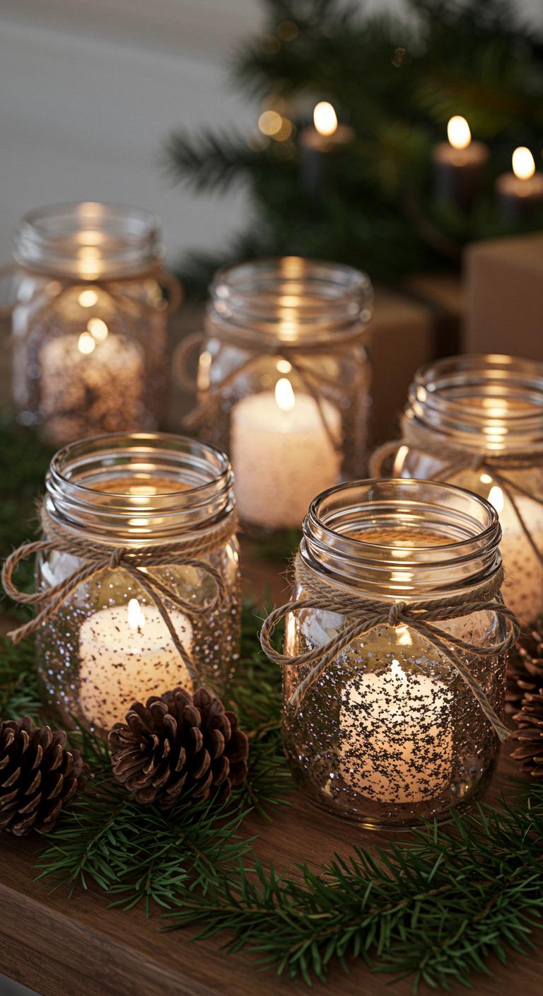 Fill them with pinecones or seasonal greenery for a cozy, inviting glow that captures the holiday spirit.
