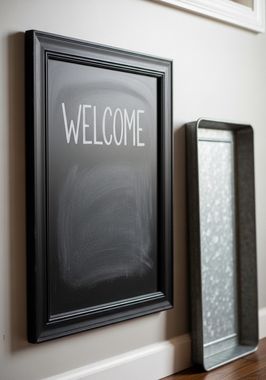 A chalkboard for notes or greetings adds a fun, interactive element to your cozy entry. I write little quotes on mine, and friends always smile when they see it. Erase and update for holidays or moods – so versatile.